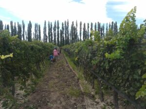 Son 3 fincas que hacen un total de 31 hectáreas cultivadas al máximo con uvas variedades tintas en su mayoría como la bonarda y el syrah y también Moscatel y cereza.
